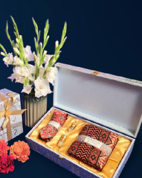 Aamoda, signifying festivity and celebrations in Sanskrit, is the perfect Diwali gift amalgamating natural silk fabrics in joyful colors alongwith rich fragrances for him and her.