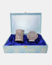 Kāntivardhanam in Sanskrit , is the "Enhancer of Splendor". This intricate set o f banarasi stone co asters paired with banarsi stone pen stand will definitely add splendor to your table.