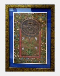 Aaradhya, meaning “revered” or “worshipped” in Sanskrit, is an homage to the sacred fusion of history and art. At its heart lies a rare Basohli miniature painting, a GI-tagged treasure from the hills of Jammu, renowned for its bold lines, vibrant palette, and expressive storytelling rooted in Hindu mythology and courtly lore.