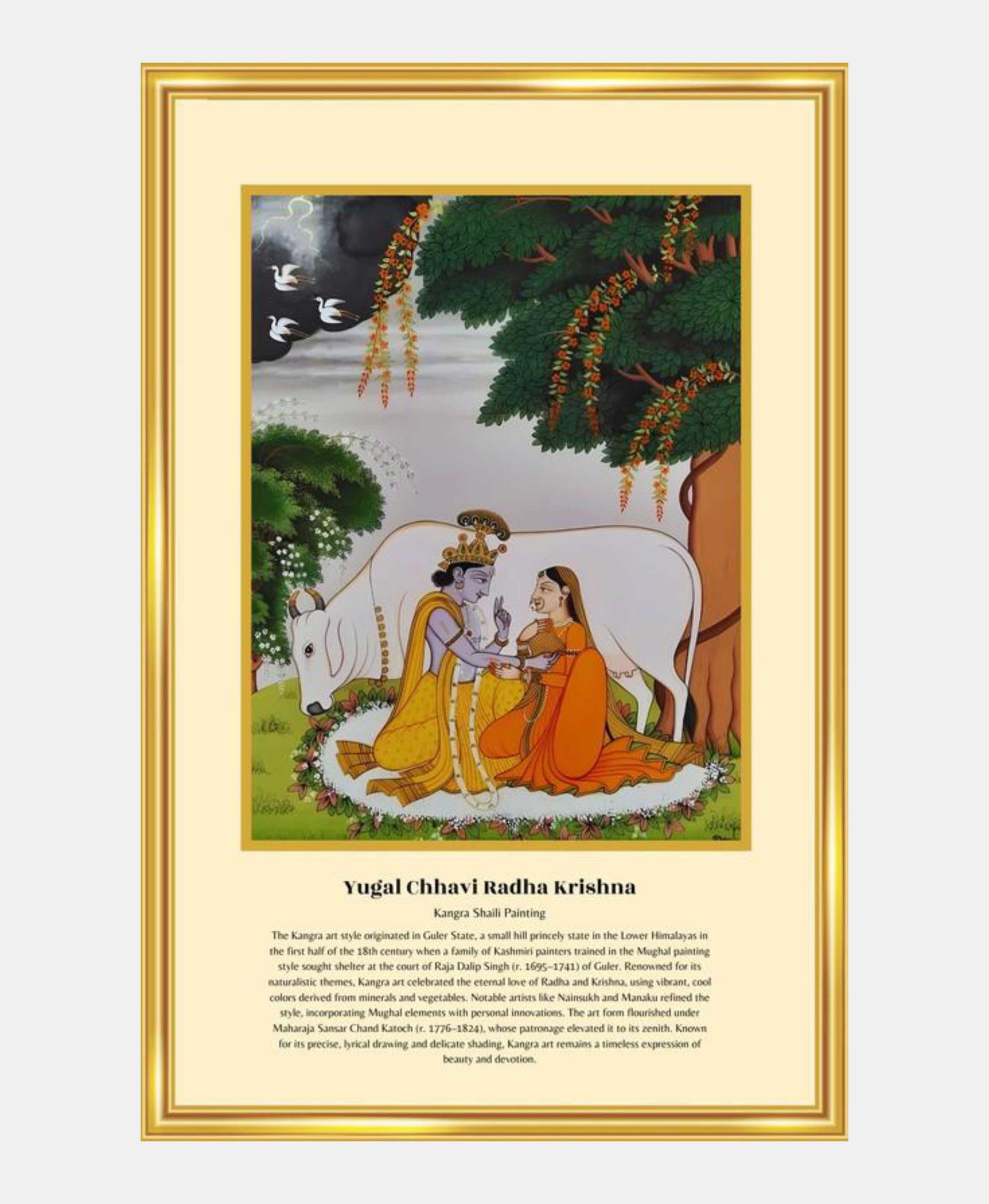 An heirloom of emotion and technique, this artwork brings the romance of the Bhagavata Purana and the Gita Govinda into form. It is a piece to behold, contemplate, and cherish for a lifetime.