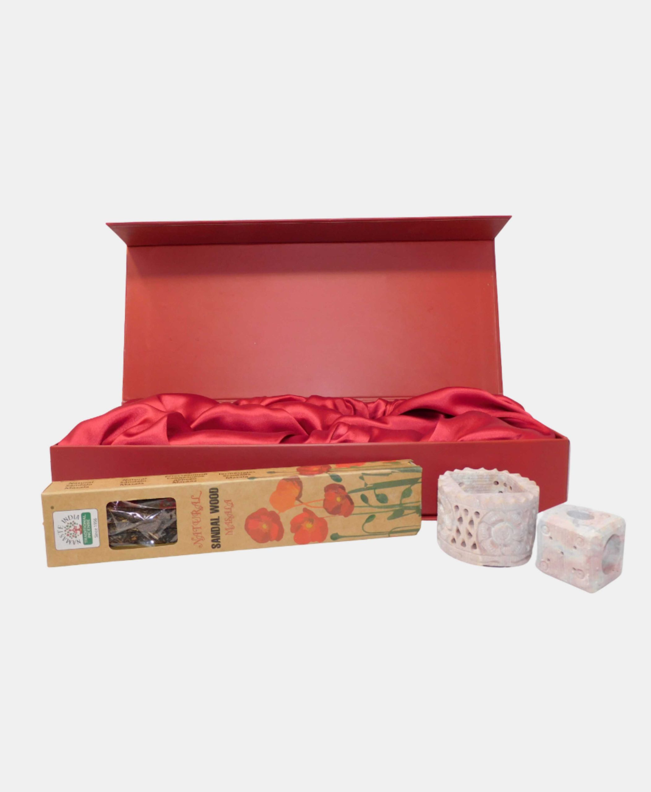 A Banarasi Stone Incense Stick Holder is a traditional incense holder made from natural stone, often sourced from Varanasi, India. Known for its intricate carvings, it securely holds incense sticks while catching ash as they burn. Adorned with traditional Indian designs, it serves as both a functional and decorative piece, adding elegance and spiritual ambiance to any space.