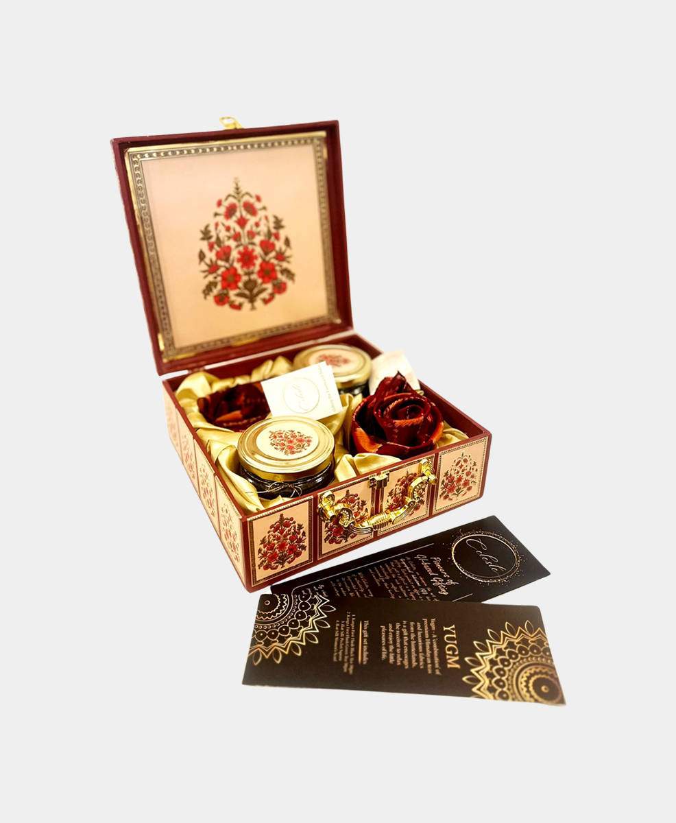 Yugm – A ‘combination’ of premium Himalayan teas and luxurious fabrics from the hinterlands, where two elements have come together to create something greater and encourages the receiver to relax and enjoy the little pleasures of life.